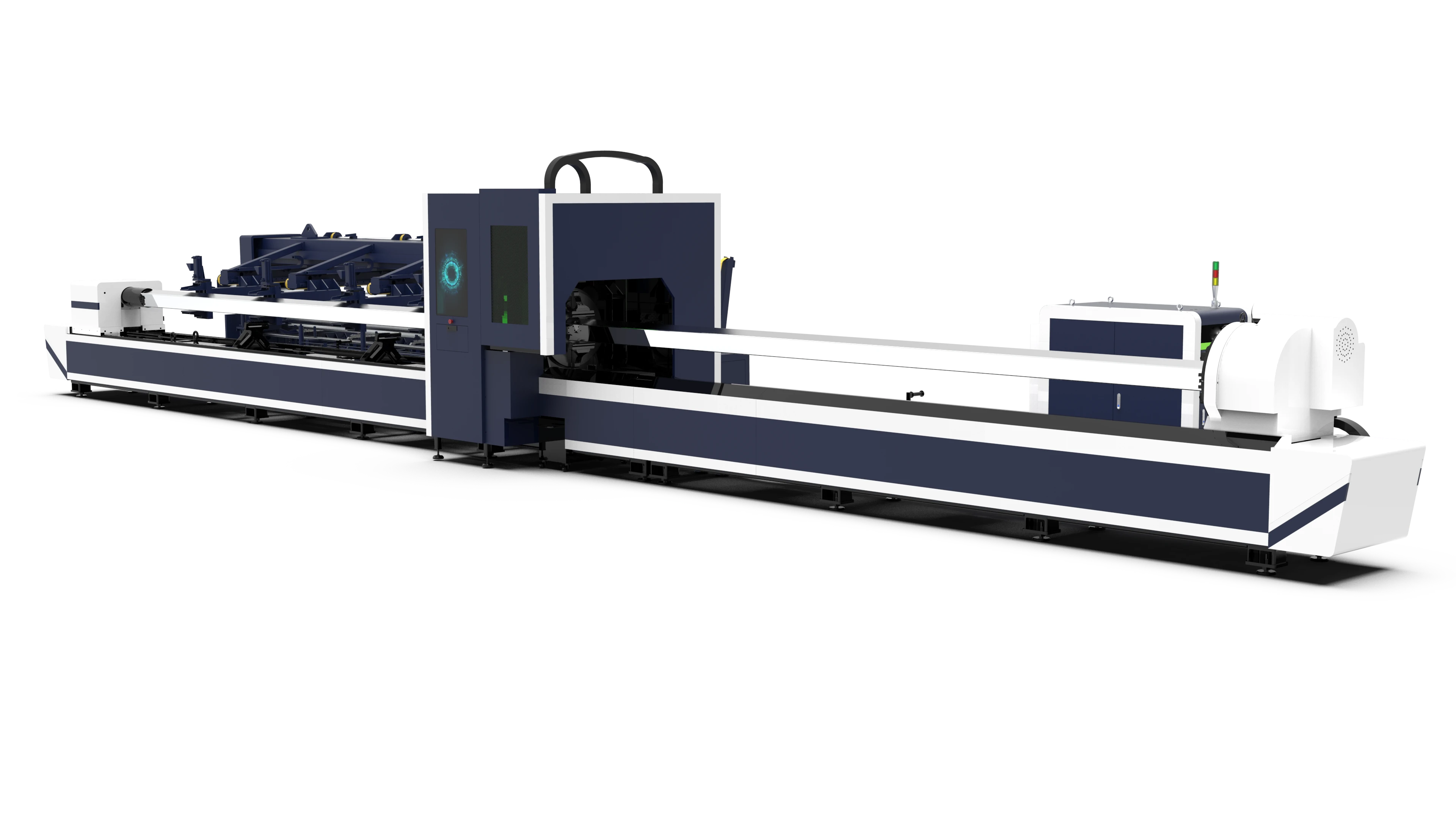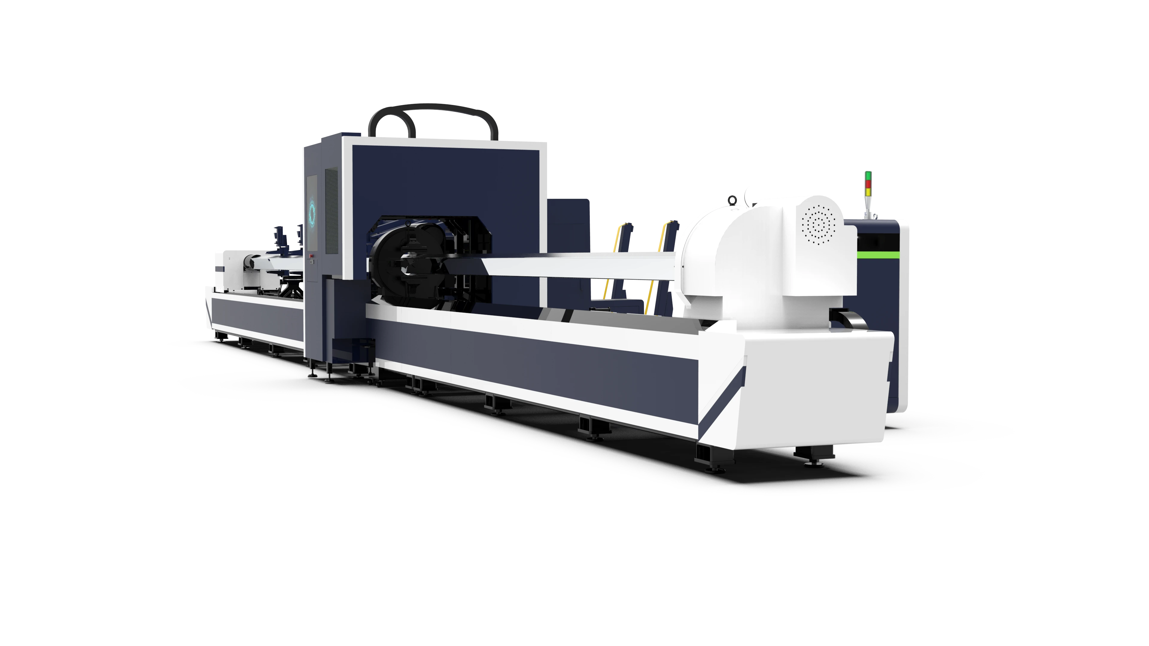 La serie LF-AT es una solución avanzada para el corte láser de tubos metálicos que destaca por su automatización integral. Incorpora un sistema de carga y descarga automática controlado por CNC, lo que permite un flujo de trabajo continuo y eficiente. Su estructura industrial está sometida a tratamientos térmicos de alta temperatura (450-650°C) para garantizar que el chasis no se deforme y mantenga la precisión durante toda su vida útil.
