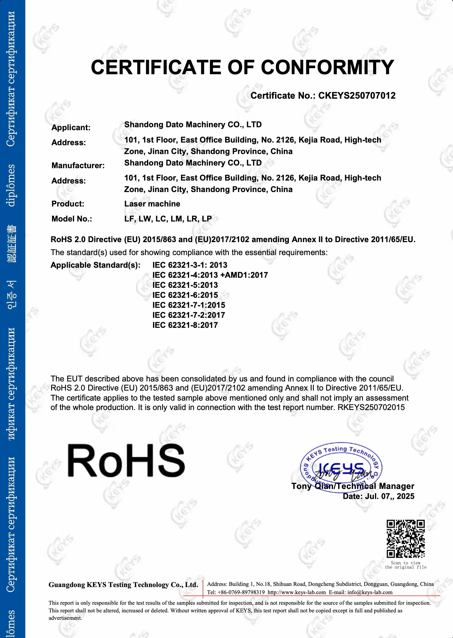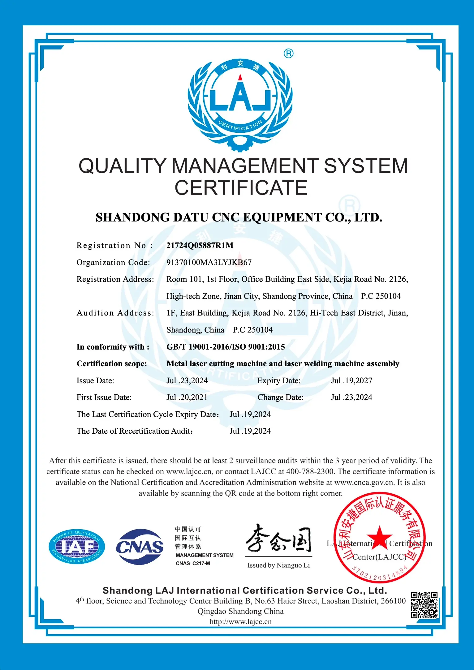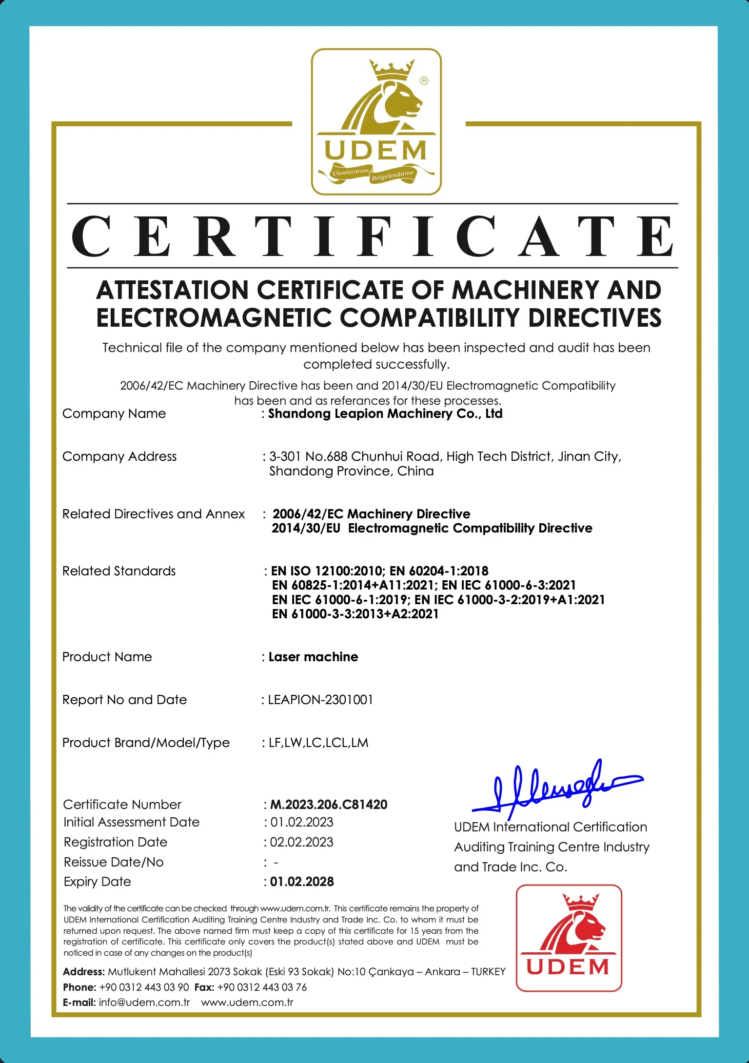 Certificaciones láser industrial